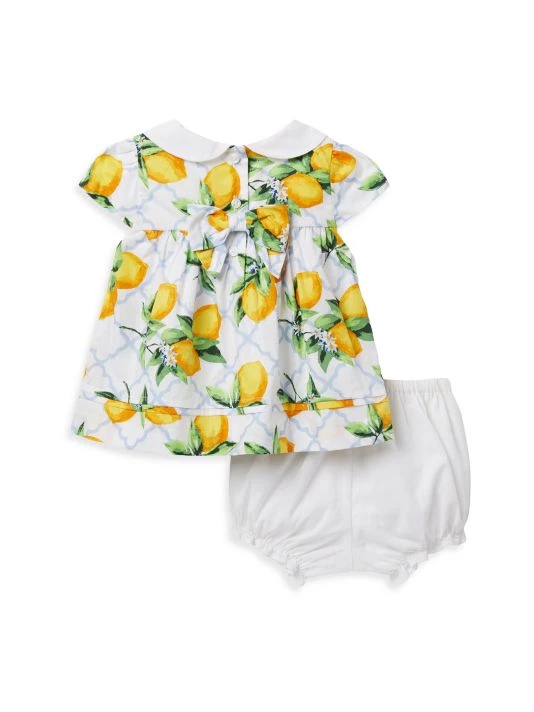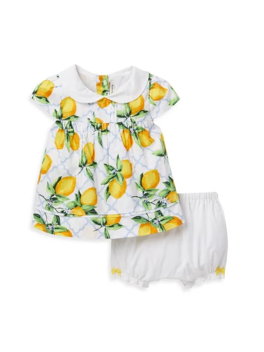 This lemon-print set is defined by sweet details like the peter pan collar, pintuck pleats, and bow appliqués. 100% cotton.Machine washable. Imported