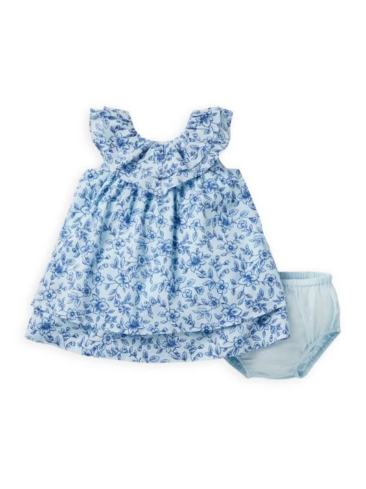 Crafted of cotton, Janie and Jack’s Floral dress features a layered collar and a layered silhouette. The adorable piece includes matching bloomers.