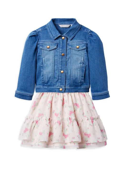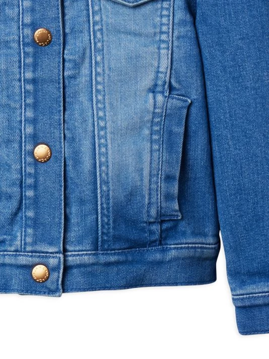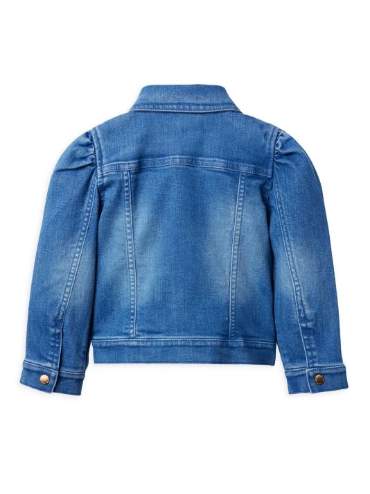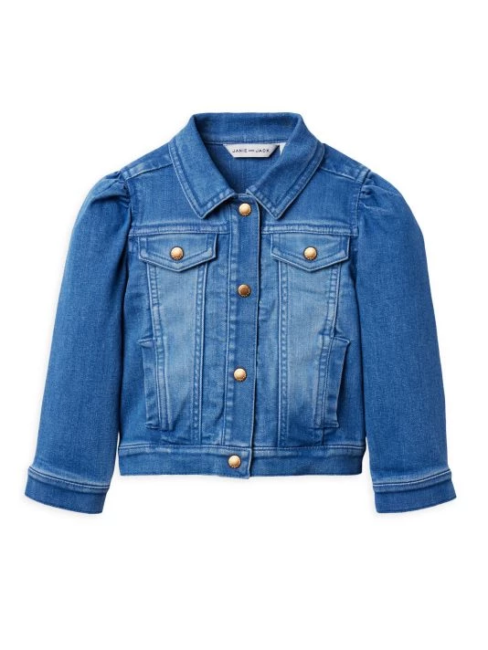 This classic denim jacket features puff long sleeves, multiple pockets, and easy-to-use snap buttons.