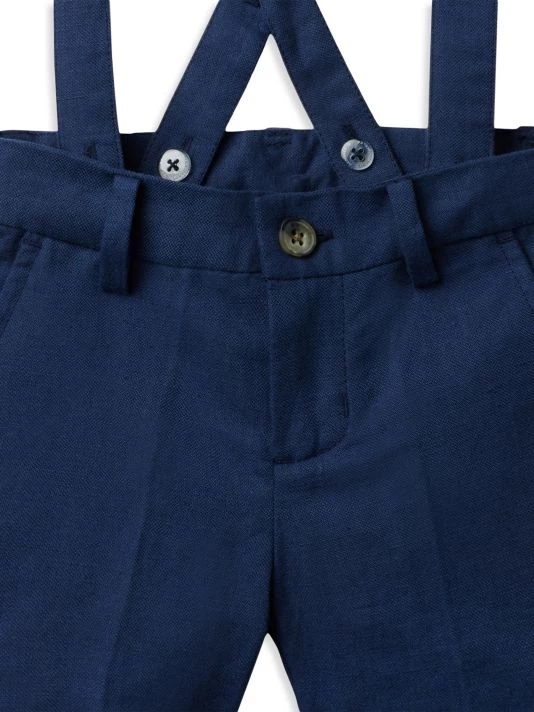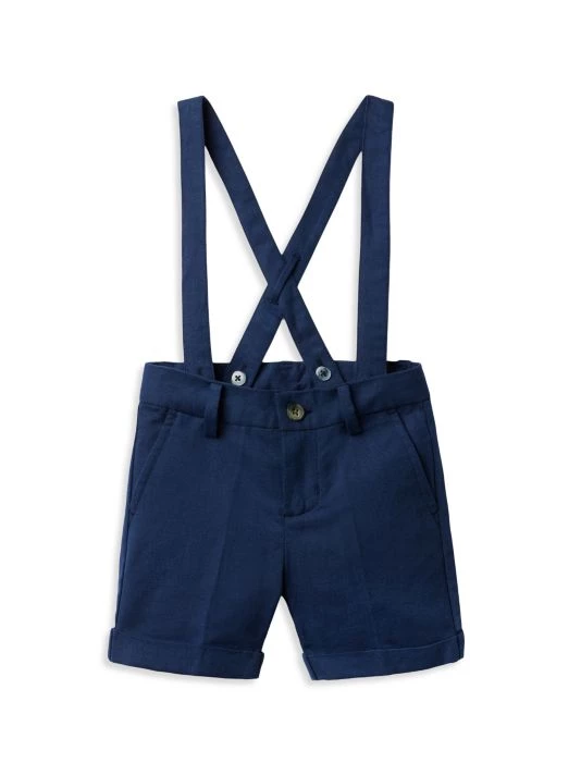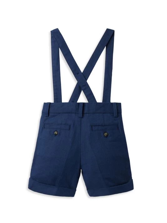 These linen-blend shorts with rolled cuffs feature removable suspenders.
