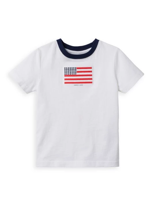 This patriotic-inspired soft jersey T-shirt is detailed with an embroidered flag graphic and contrast neckline.