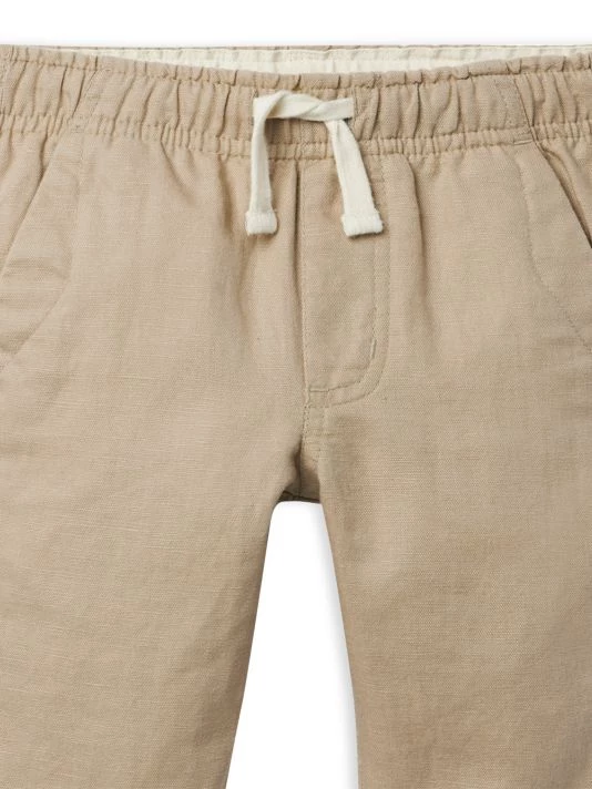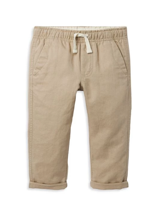 These linen slim-fit pants feature two slit pockets and rolled-up cuffs.