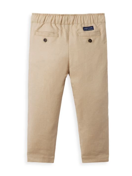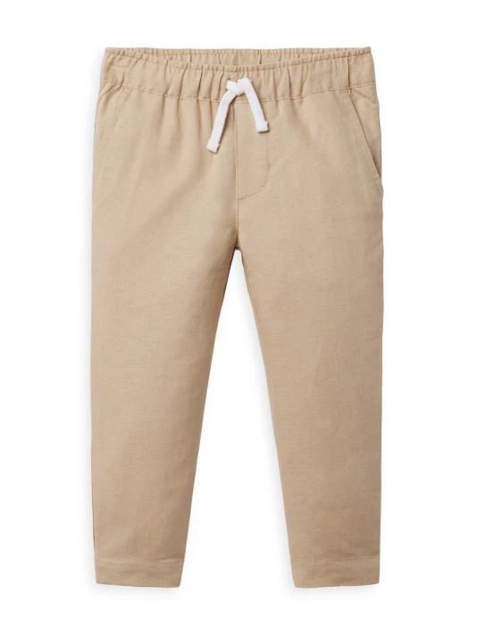These soft linen pants feature a drawstring waist and two slit pockets at the sides.