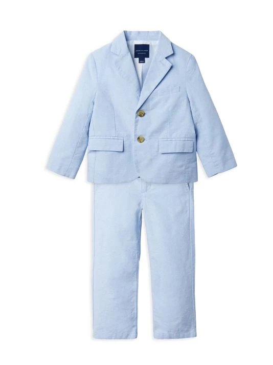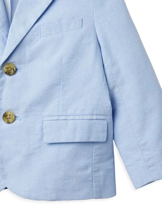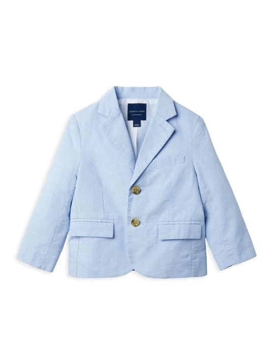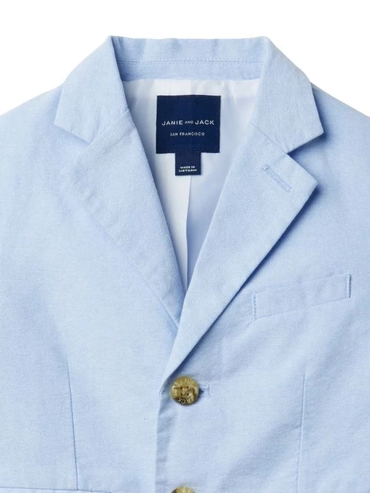Founded in 2002, Janie and Jack offer classic kids’ styles in soft fabrics with a modern twist. This lightweight Oxford blazer features notched lapels and dual flap pockets at the sides.