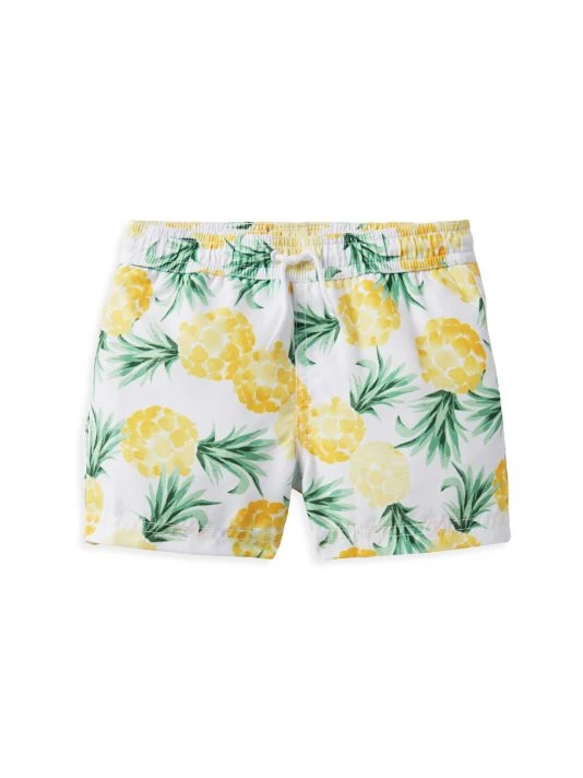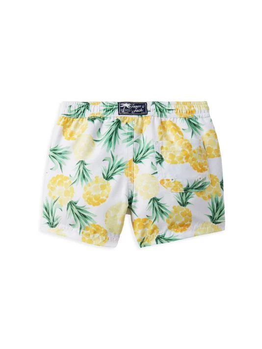These Janie and Jack swim shorts are adorned with a playful pineapple motif.