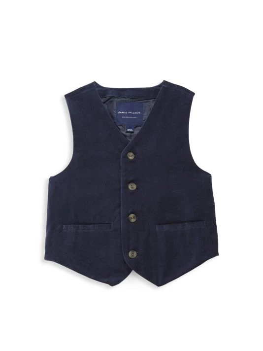 This suit vest in plush velvet detailed with a buckle back and welt pockets.