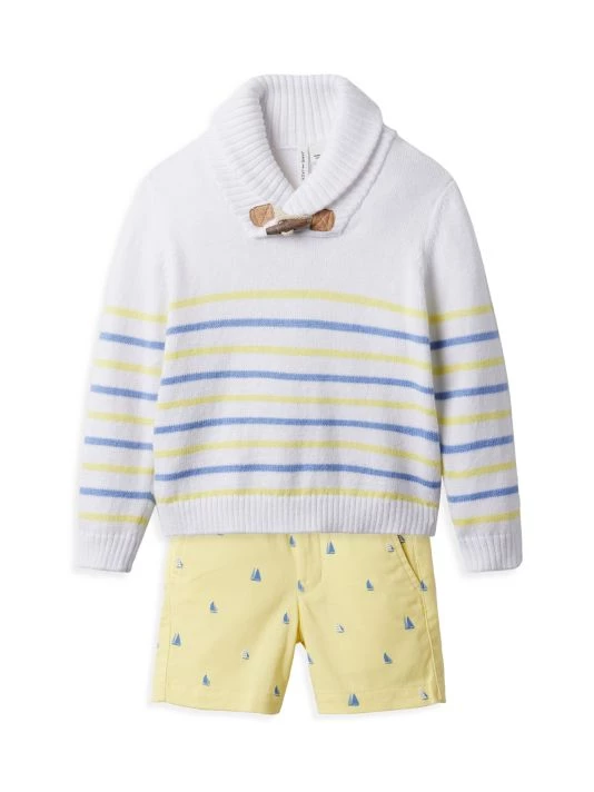 These twill shorts by Janie and Jack are adorned with a sweet sailboat motif. The elasticized waistband allows for a comfortable fit.