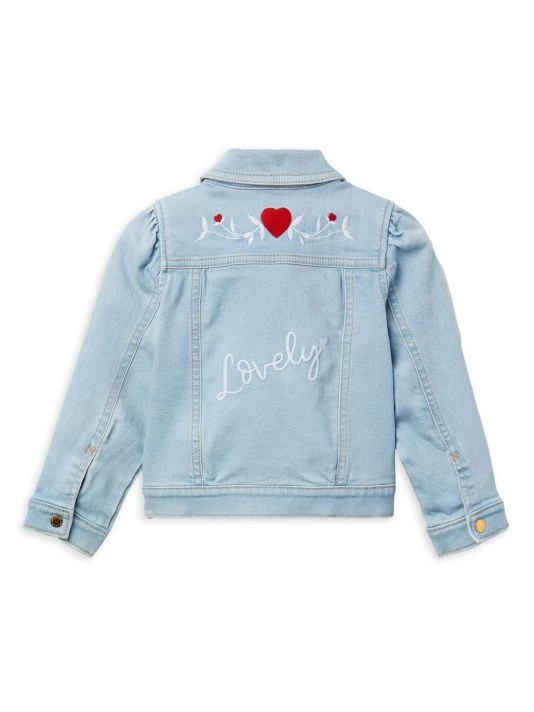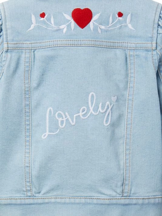 This denim jacket is detailed with embroidered details at the back and pockets.