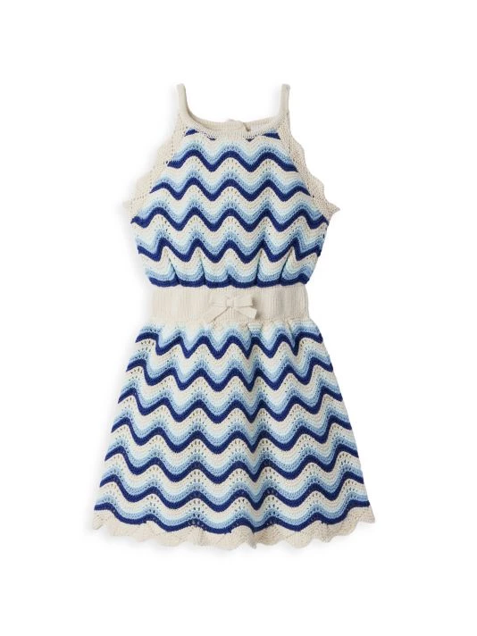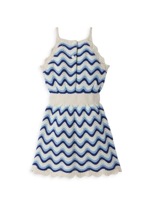 Crafted of cotton, Janie and Jack’s Striped Sweater dress features a halter neck and an elasticized waistband. The intricate piece is finished with scalloped trim at the arm holes and hemline.
