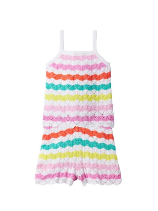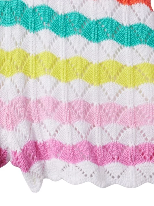 Crafted of combed cotton, these Janie and Jack sweater shorts are adorned with a rainbow-striped motif. This fun style is finished with a scalloped hem.
