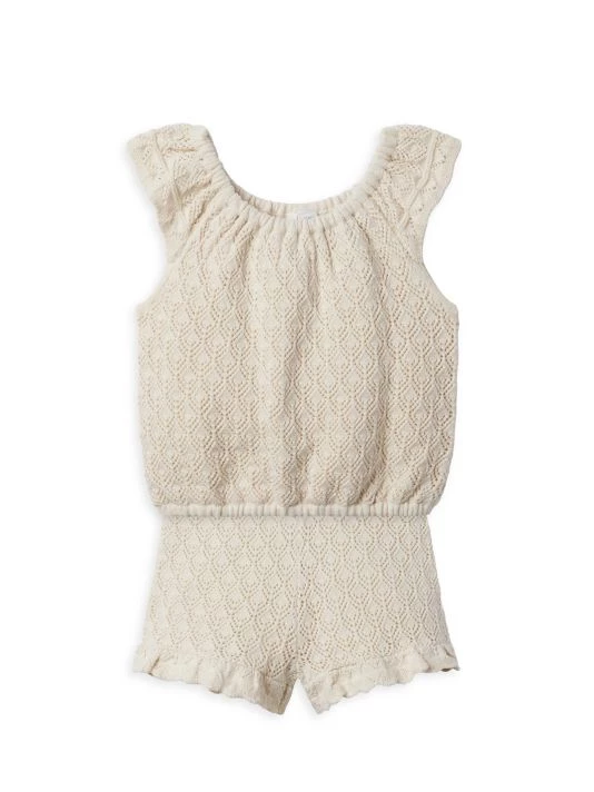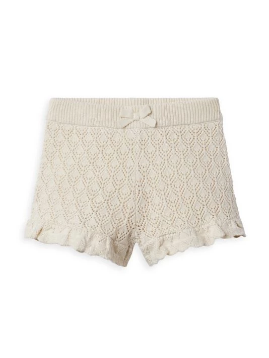 Crafted of cotton, these sweater shorts from Janie and Jack feature a beautiful crochet design and a rib-knit elasticized waistband. This style is finished with a scalloped hem.