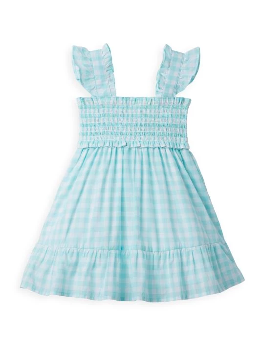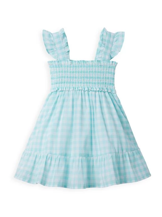 This gingham-print dress is detailed with ruffled straps and a stretch-smocked bodice.
