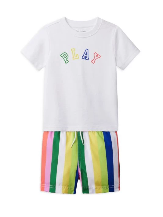ONLY AT SAKS. From the Kaavia James x Janie and Jack Collaboration. These polyester swim trunks feature a striped pattern and fasten with a drawstring elastic waistband.