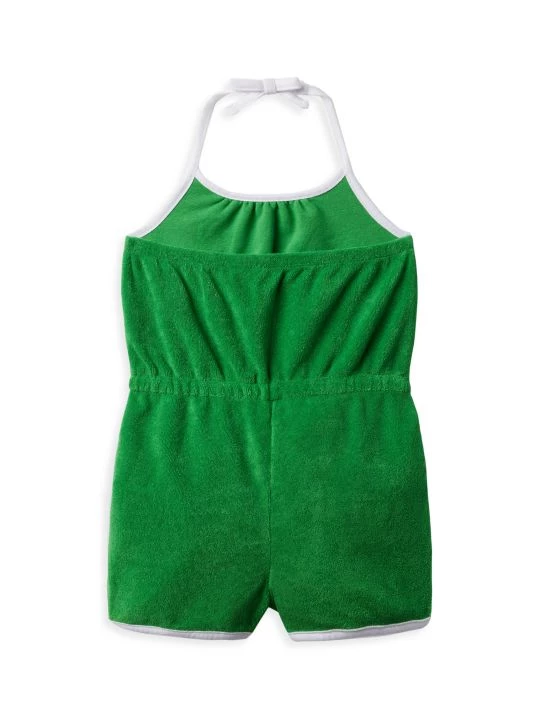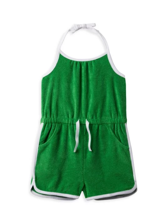 From the Kaavia James x Janie and Jack Collaboration. Made of a cotton blend, this halter-style romper features a drawstring waist and has side slip pockets.