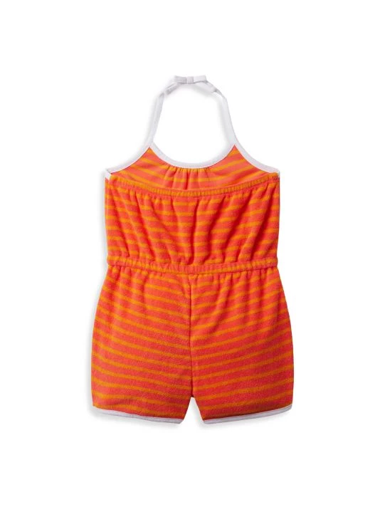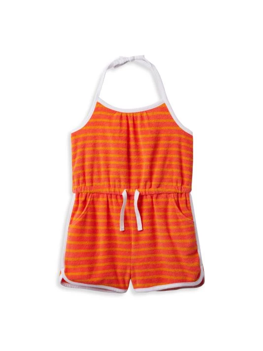 From the Kaavia James x Janie and Jack Collaboration. This halterneck romper is in a terry cloth finish boasts a striped pattern, contrast trim, and elastic drawstring waist.