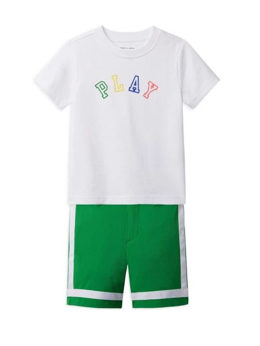 From the Kaavia James x Janie and Jack Collaboration. These flat-front shorts are detailed with a contrast trim and belt loops.