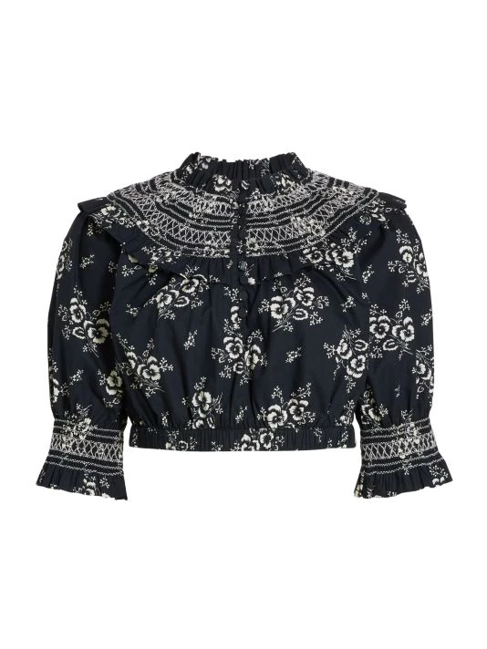 Cut in a cropped silhouette, Sea’s Alessia pullover top features an elasticized hem. Ruffled detailing and a contrast floral print evoke a sense of play.