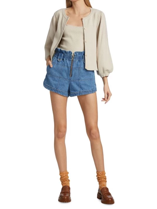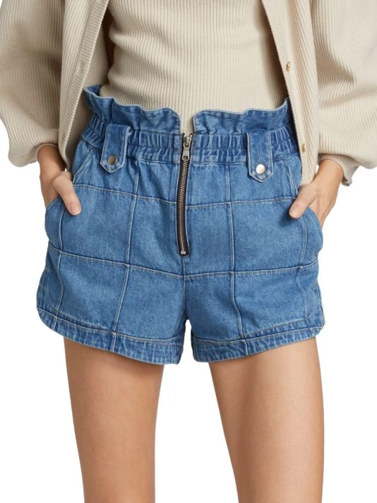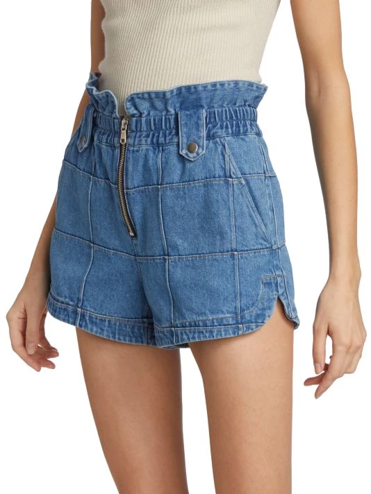 Crafted of denim, the Dagmar shorts feature a ruffled paperbag waist.