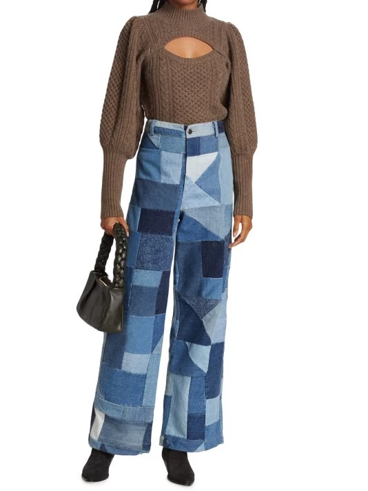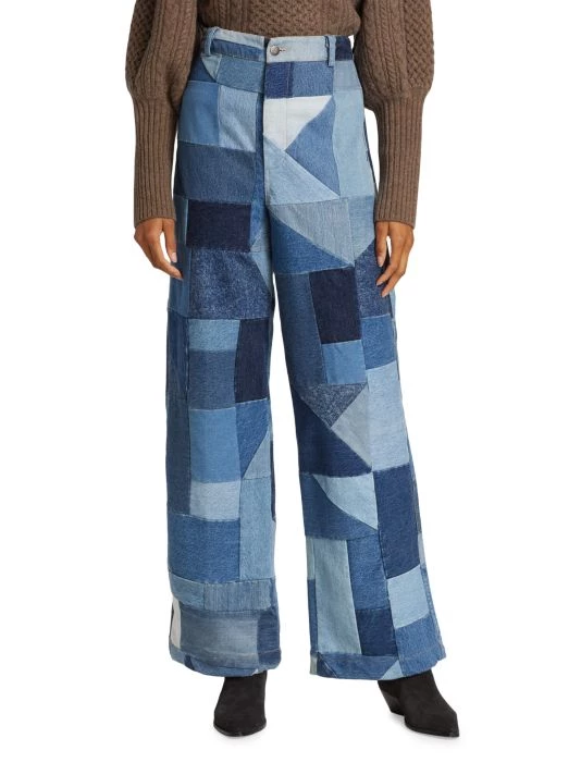 The Diego pants from Sea are crafted of the brand’s signature patchwork construction. Back patch pockets finish this high-waisted, wide-leg style.
