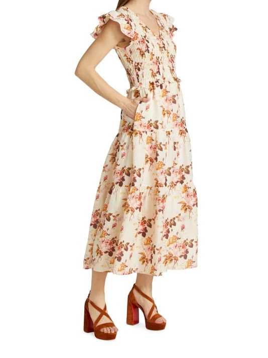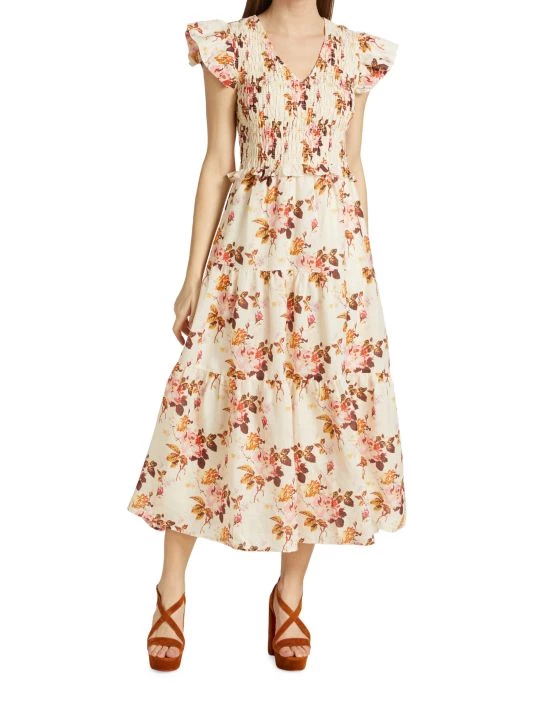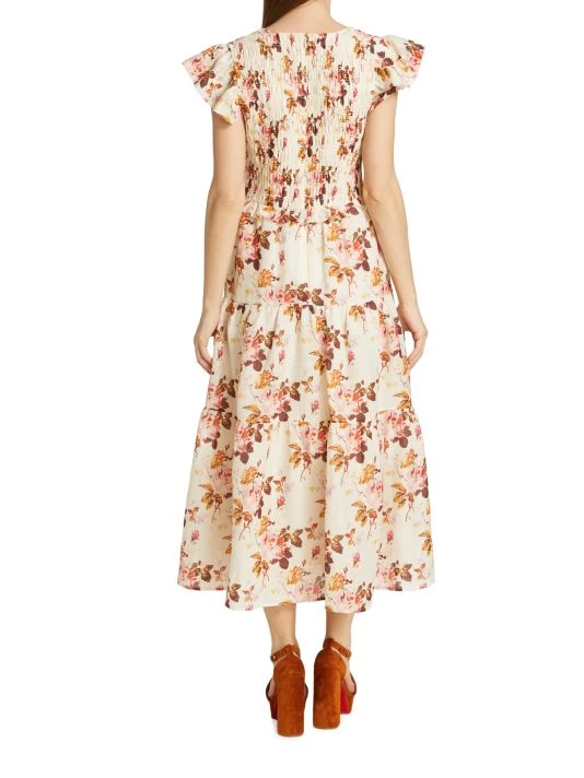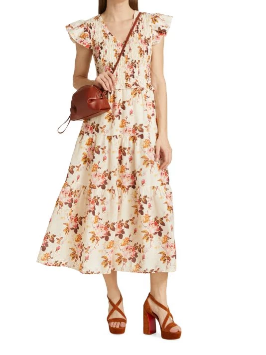 Sea’s Esme maxi-length floral-print dress features a smocked bodice. Cut in an A-line silhouette, this tiered style is finished with side on-seam pockets.