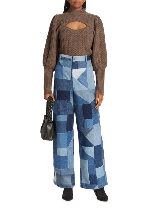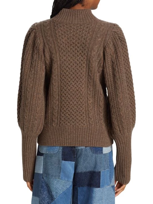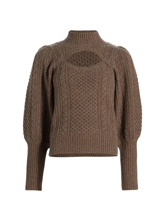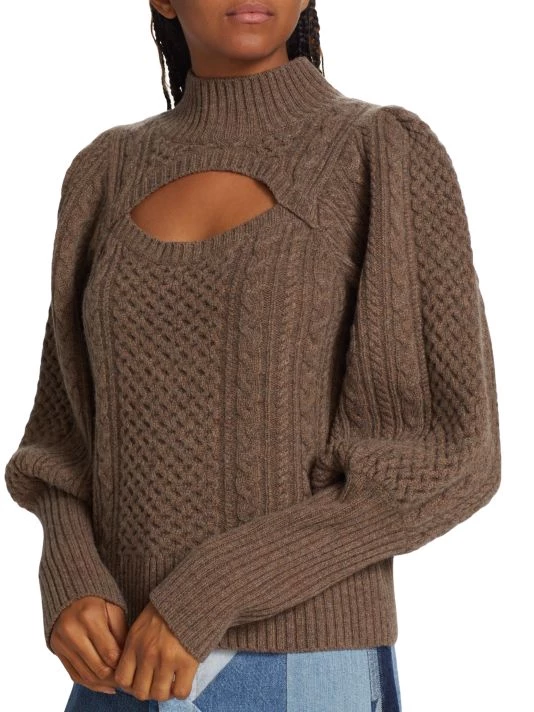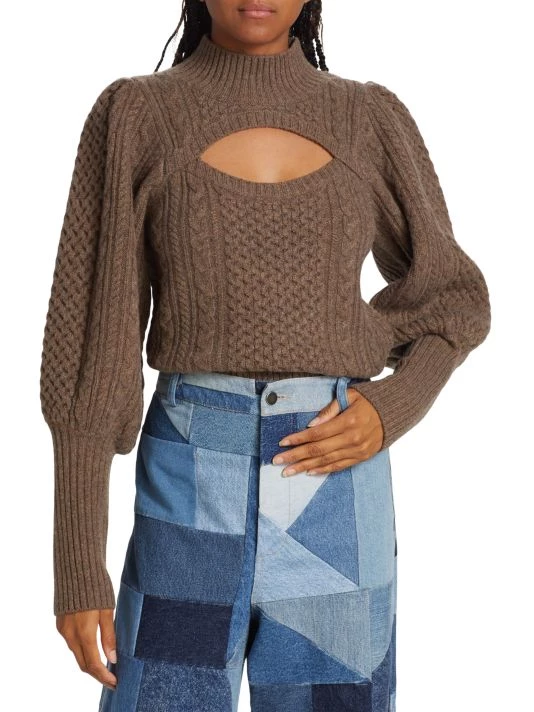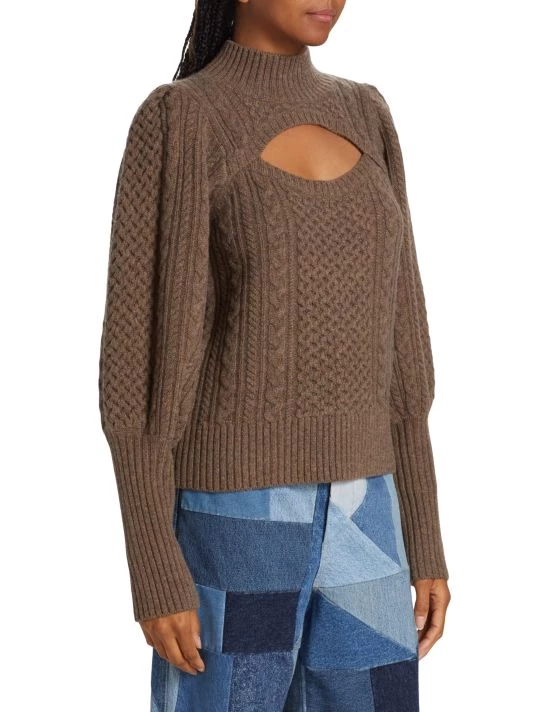 Crafted of soft merino wool, the Juliette cable-knit sweater from Sea features a turleneck and a center chest cut out. Long bishop sleeves and classic rib-knit trim finish this relaxed style.
