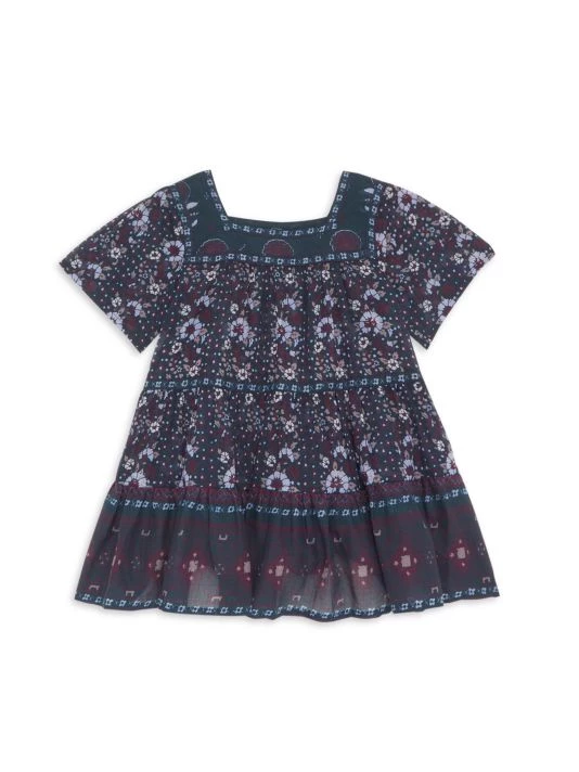 This short-sleeve flounce dress features a square neckline and a mosaic-inspired print.