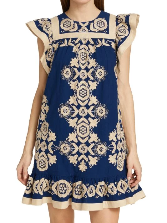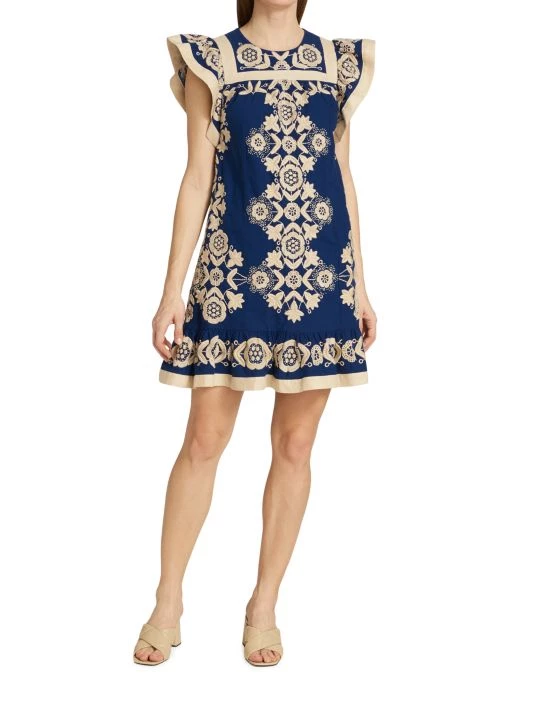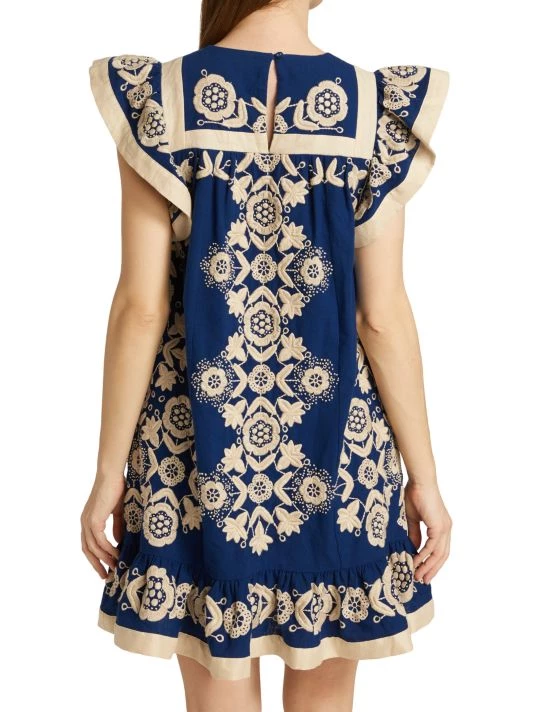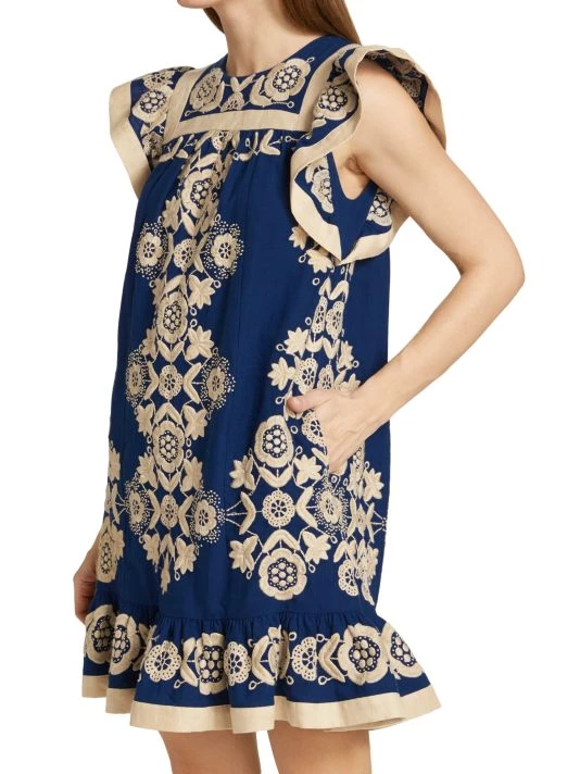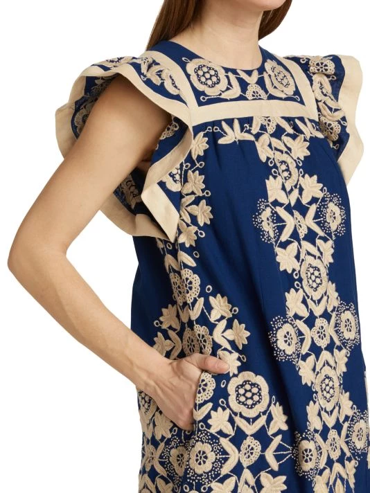 Crafted of a cotton-linen blend, this Manuela tunic by Sea is detailed with floral-inspired embroidery. It features side-seam pockets and a ruffled hem.