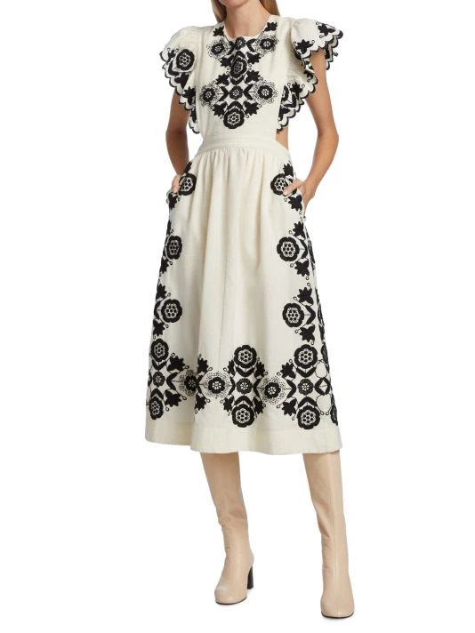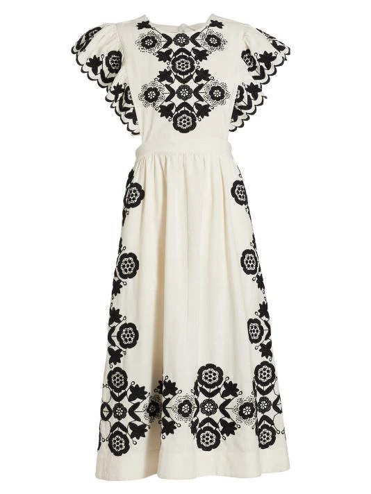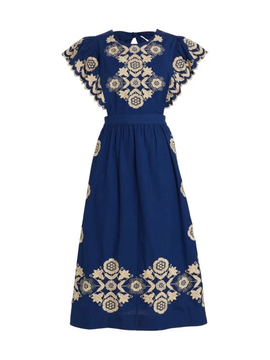 The Manuela midi-dress by Sea is crafted of a cotton-linen blend with elegant embroidery.