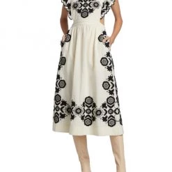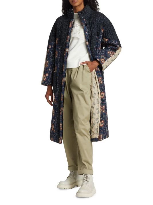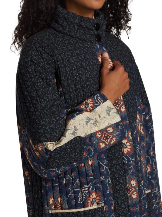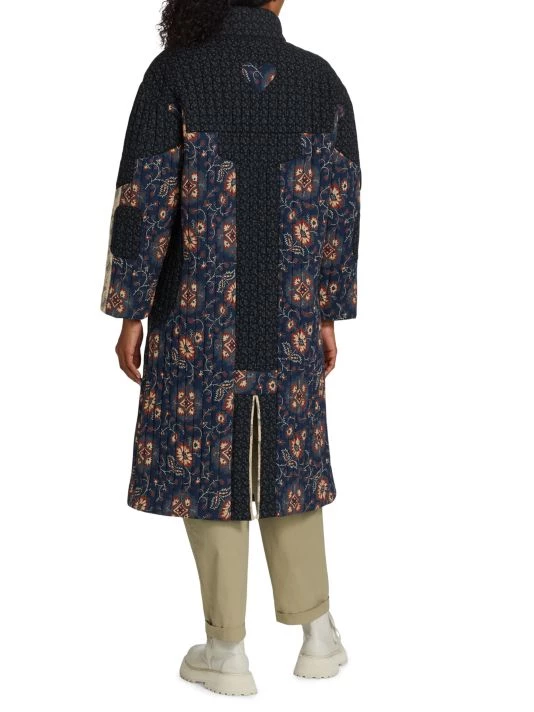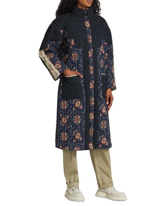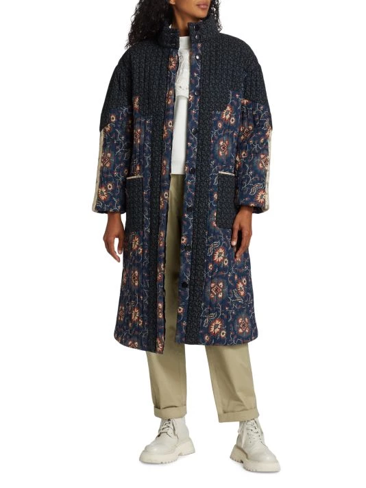 Mixed prints lend dimension to Sea’s Robina coat, designed with a quilted texture and knee-length silhouette.