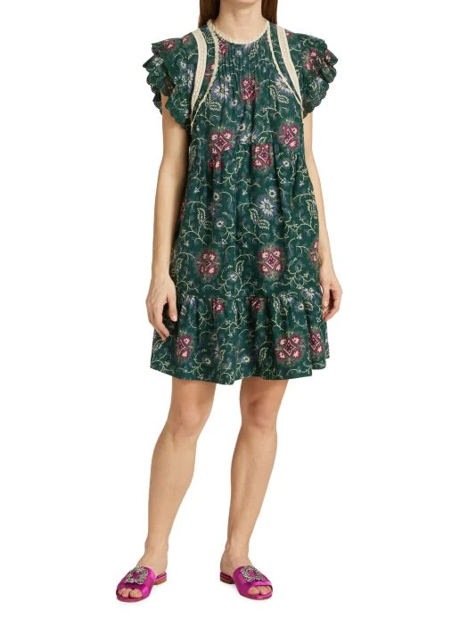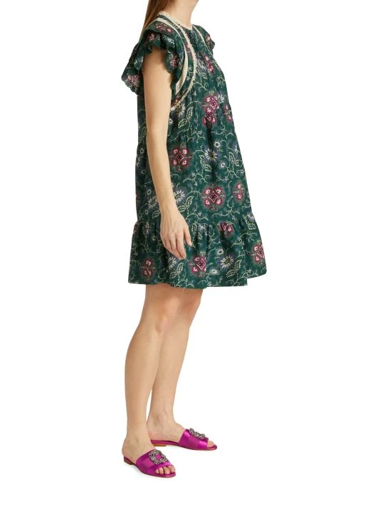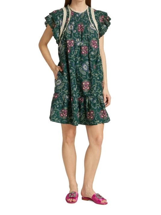 The Robina tunic dress by Sea is crafted of cotton with flared sleeves and delicate lace insets at the bodice.