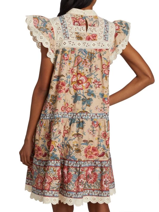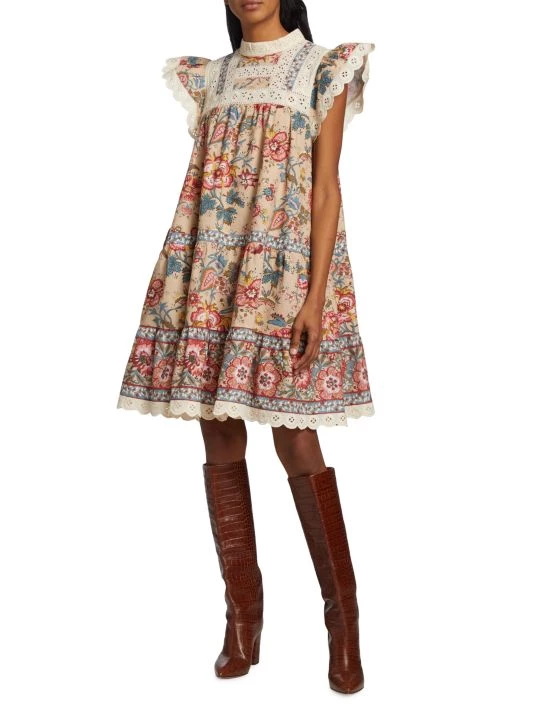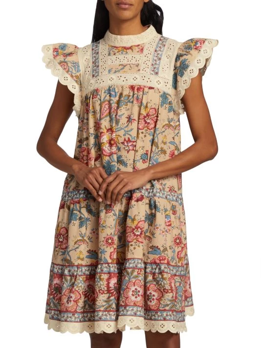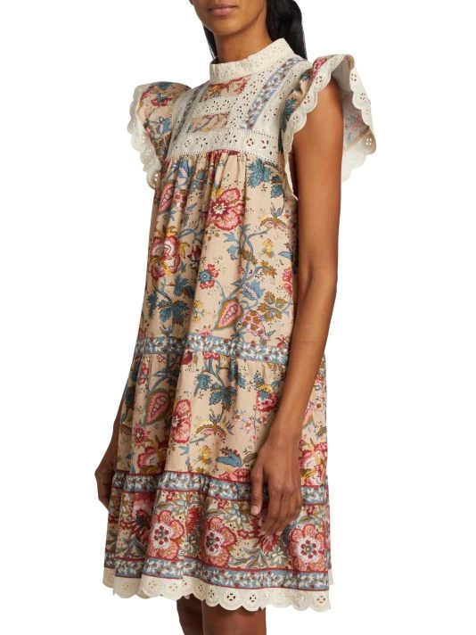 Crocheted lace trims Sea’s Tess tunic dress, crafted from vibrant floral-print cotton.